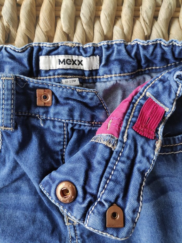 Pantalon jean Mexx taille 18-24 mois/86cm. Très bon état. Taille élastiquée avec possibilité de réglage par élastique et boutons.
