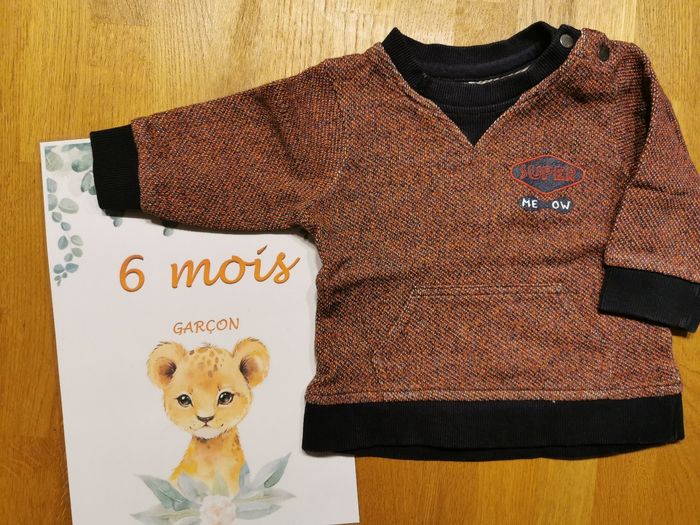 Très peu porté 6 mois Ensemble 3 pièces, collection "super me ow" : - 1 pull bleu marine et ocre. 2 petits boutons pression sur l'épaule. - 1 tee-shirt manches longues bleu marine avec inscription "Me Ow" - 1 pantalon jegging bleu marine avec lien de serrage à la taille. #ensemblebebe #ensemblebébégarçon #ensemblebebe6mois #ensemblebebe6moisgarcon #ensemblegarçon