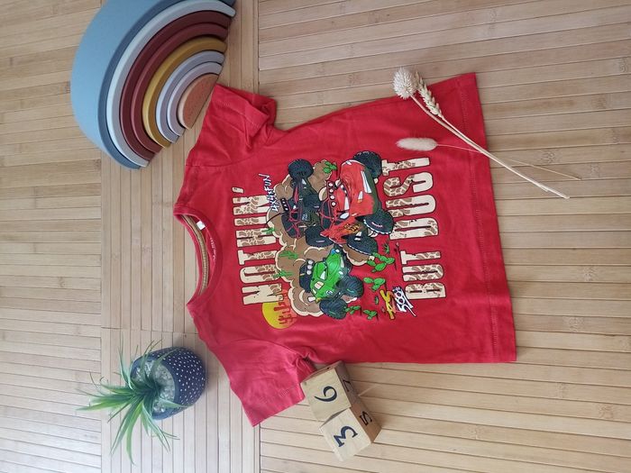 Tee-shirt rouge motif voitures type cars etc..