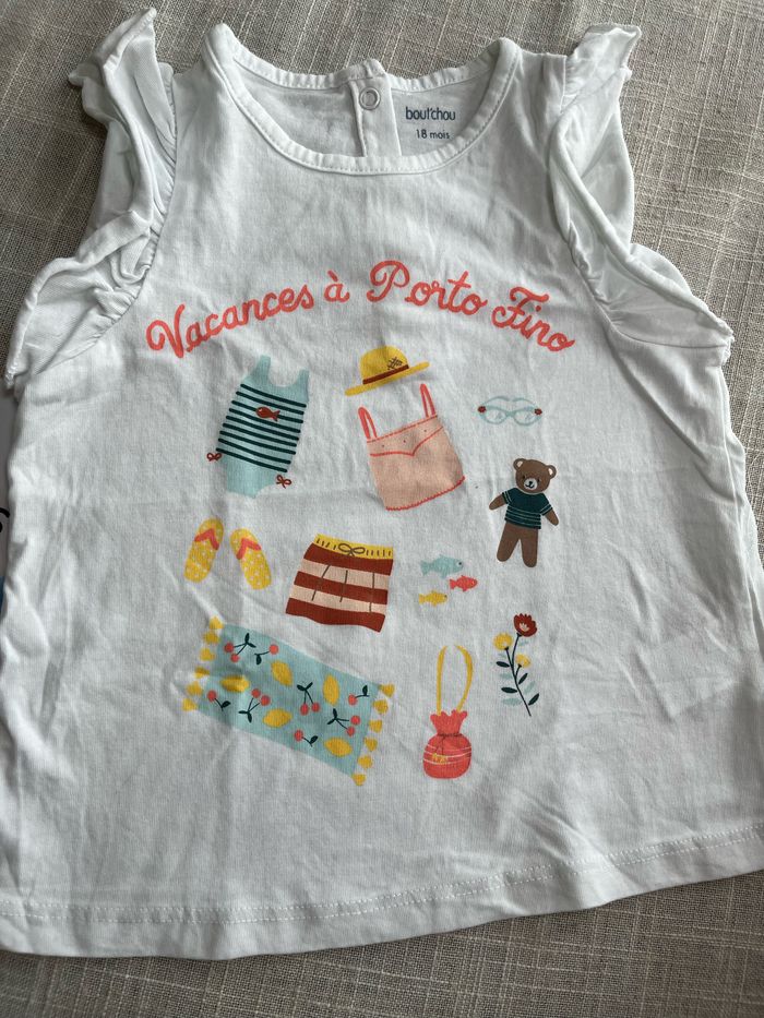 Joli t-shirt sans manche de la marque Bout’chou Taille 18 mois Inscription Vacances à Porto Fino Groupez vos achats pour profiter des remises activées sur les lots et réduire vos frais de port