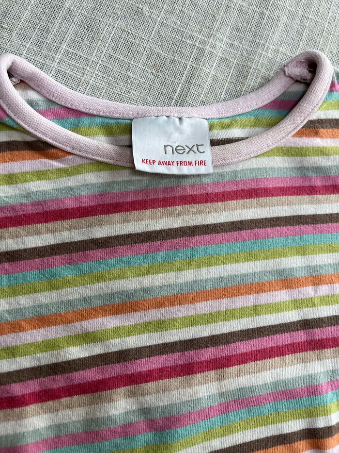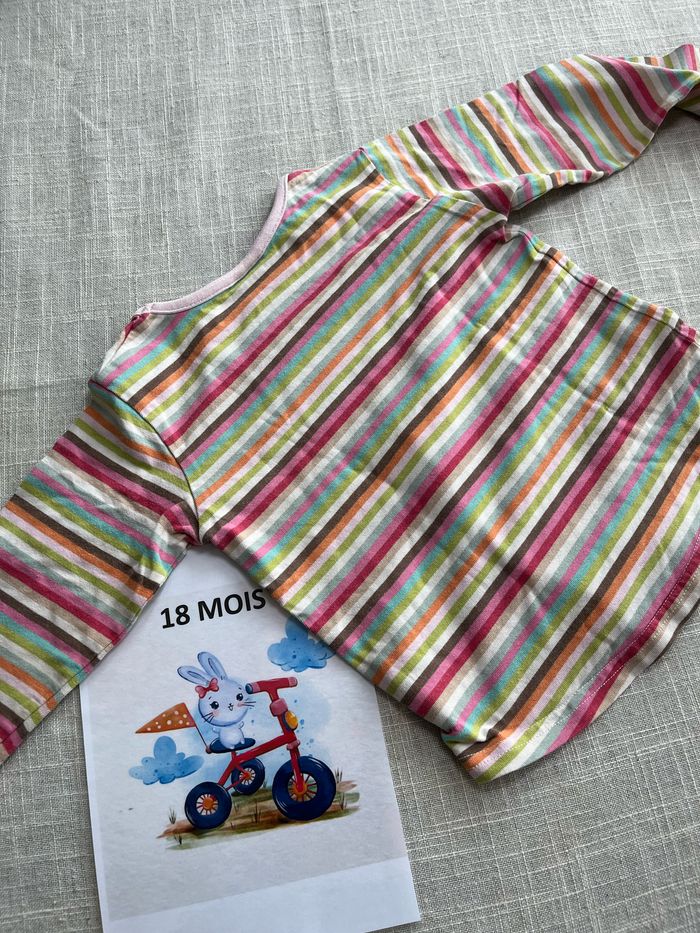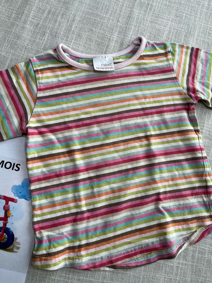 T-shirt à rayures multicolores de la marque Next Taille 18 mois mais n’est pas indiquée dessus Groupez vos achats pour profiter des remises activées sur les lots et réduire vos frais de port