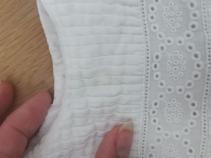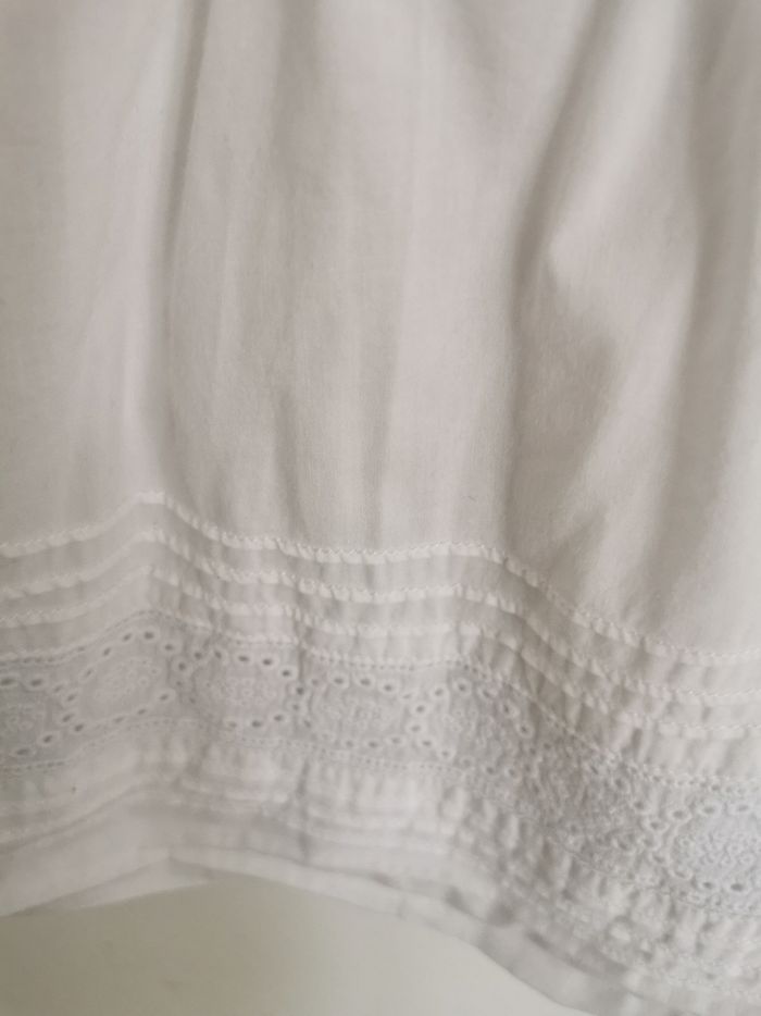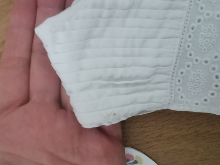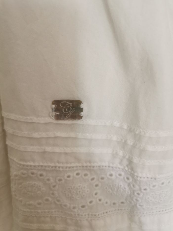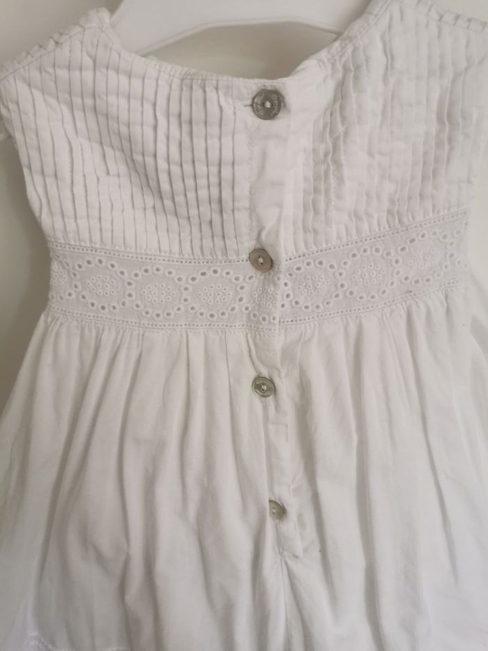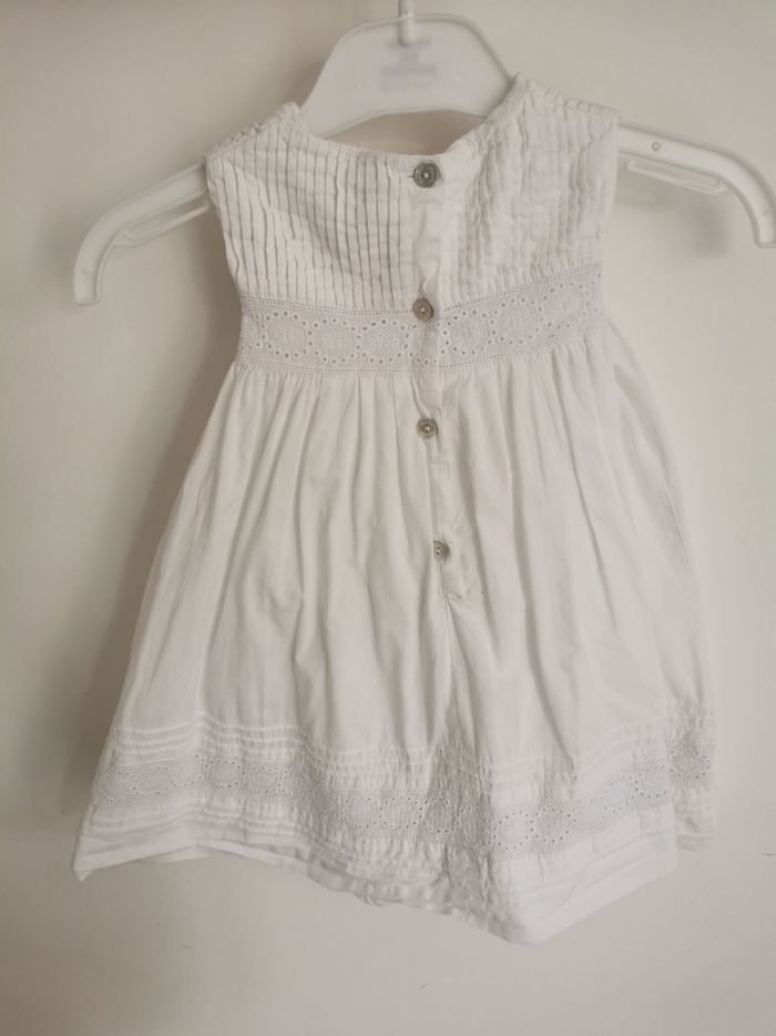 Très belle robe blanche parfaite pour la saison d'été et les invitations aux ceremonies. Elle est en excellent état mais elle a de toutes petites taches au niveau du col c'est pour cela que je la fais à petit prix. La doublure fait office de bodie ce qui est très pratique. C'est une taille 18mois de la marque cyrillus.