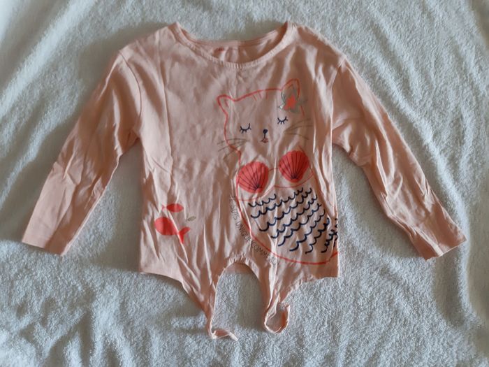 Tee-shirt manche longue avec petit nœud à faire devant. Taille 3ans de la marque kids by gemo. Motif chat sirène