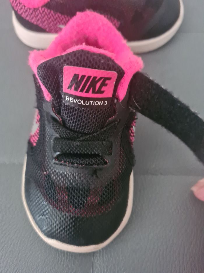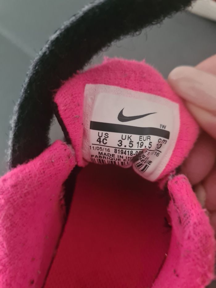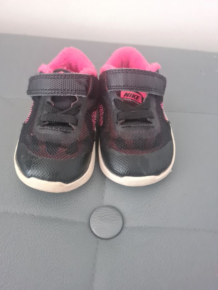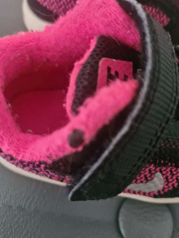 Baskets Nike rose et noir pointure 19.5 Sur une chaussure il y a un petit accroc voir sur photo