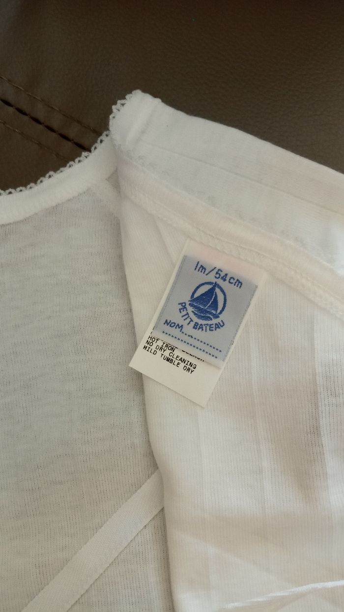 Haut Blanc manches longues "Petit Bateau" 1mois (54cm) - comme Neuf - photo numéro 2