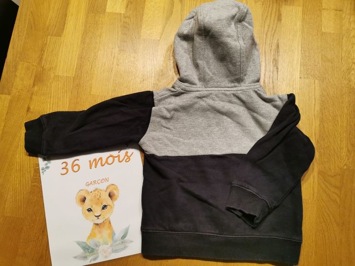 Veste à capuche, fermeture zip devant Bleu marine Manque un peu de peinture sur la fermeture (voir photo) #vesteenfant #vesteenfant3ans