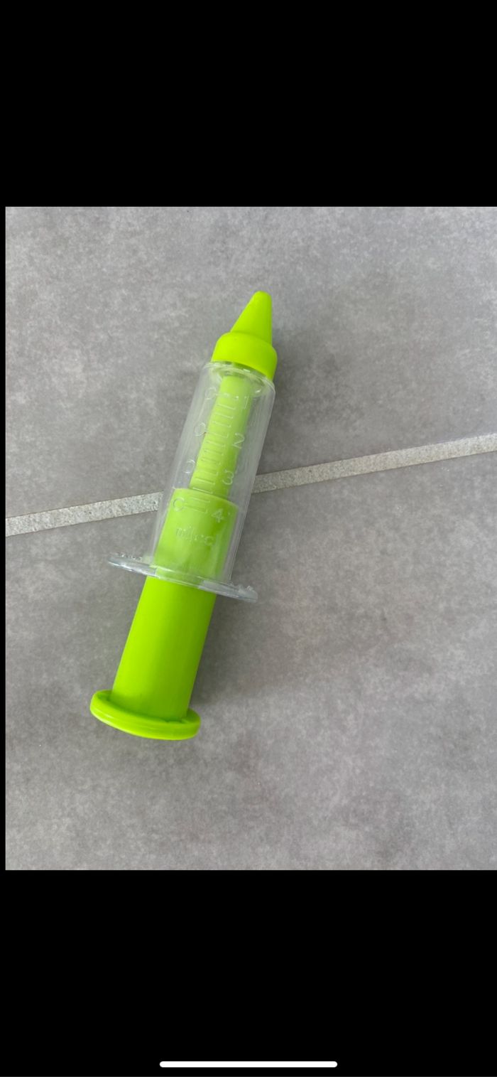 Très bon état. Juste une fissure sur la seringue voir photo. N’hésitez pas à me suivre car encore beaucoup de jouets, des vêtements fille, des), des vêtements garçon (du 1 au 12 mois pour le moment ). Maison non-fumeurs et sans animaux même si je les adore. Il n'y aura pas de poils ou d'odeur désagréable. Vous recherchez quelques choses, demandez moi. Je réponds très rapidement. Bon shopping 😊.