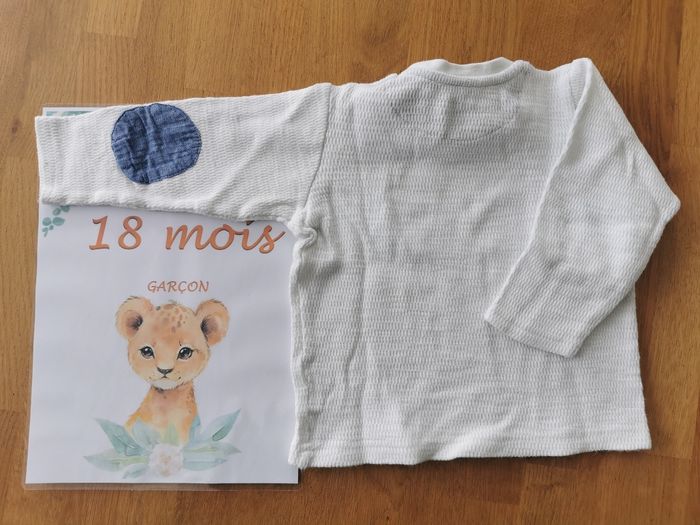 Jamais porté Tee shirt 18 mois manches longues Blanc avec details bleu #teeshirtbebe #teeshirt18moisgarcon