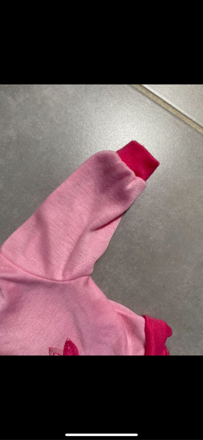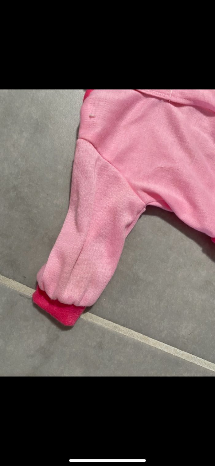 Juste une petite tache derrière peu visible. N’hésitez pas à me suivre car encore beaucoup de jouets, de vêtements fille, des chaussures en cuir, des chaussons… (du 1 mois au 8 ans), des vêtements garçon (du 1 au 12 mois pour le moment ). Un peu de 18 mois. Maison non-fumeurs et sans animaux même si je les adore. Il n'y aura pas de poils ou d'odeur désagréable. Vous recherchez quelques choses, demandez moi. Je réponds très rapidement. Bon shopping 😊