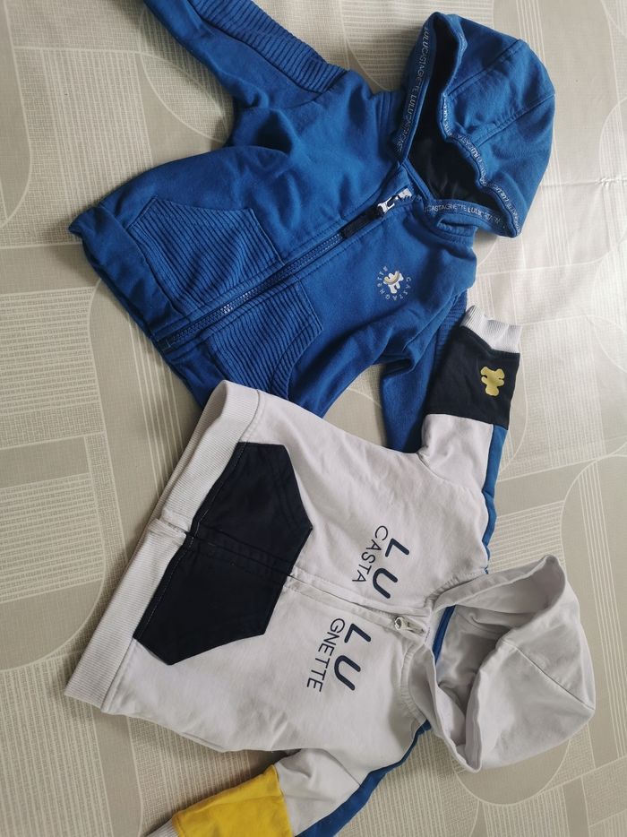 2 vestes 6mois LuluCastagnette Excellent état Il manque un petit peu sur la fermeture de la couleur,