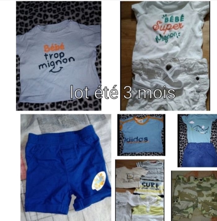 Comprend 3 short 1 pantacourt blanc 1 tee shirt adidas et 7 tee shirt 1 bodie tbe différentes marques