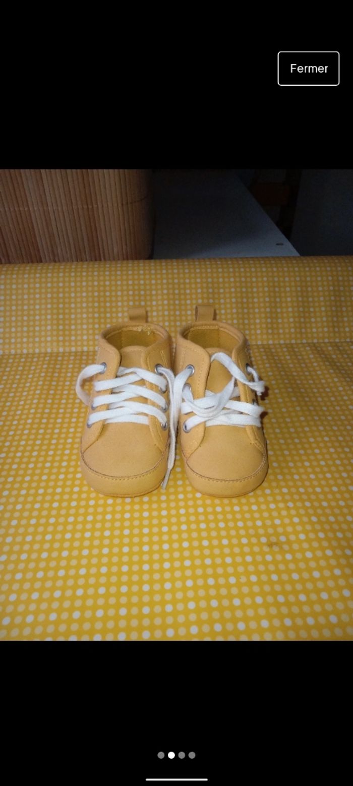 Bonjour, je vends cette paire de chaussures WINNIE qui vient de chez Kiabi, taille 18 soit du 6/9 mois, mon fils ne les a jamais portés. De couleur moutarde, elles n'ont aucun défauts.
