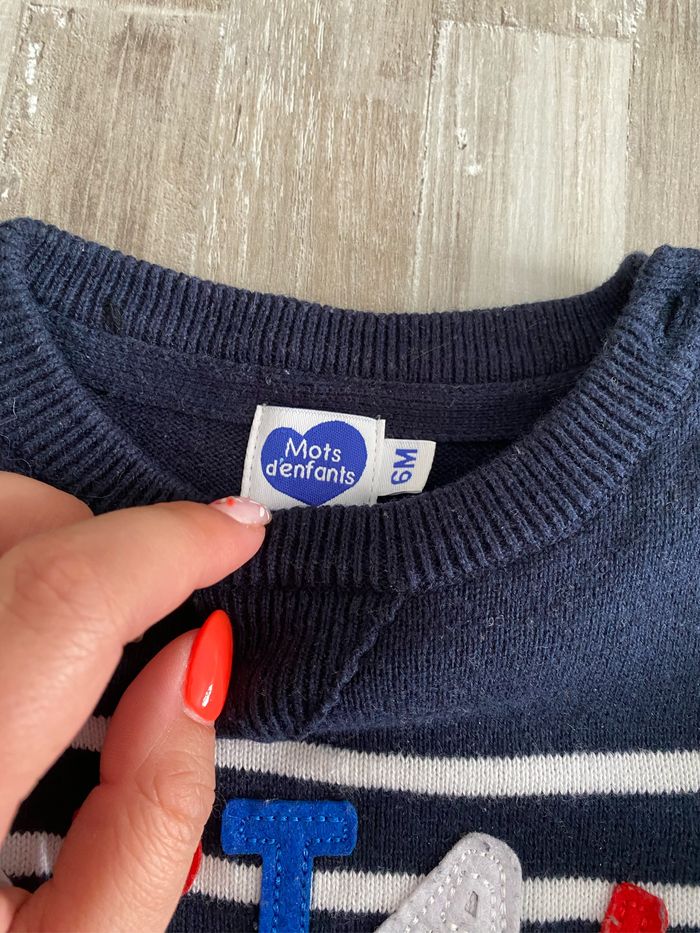 Pull fin à rayure Marque mots d’enfants 6 mois Bon état Bleu