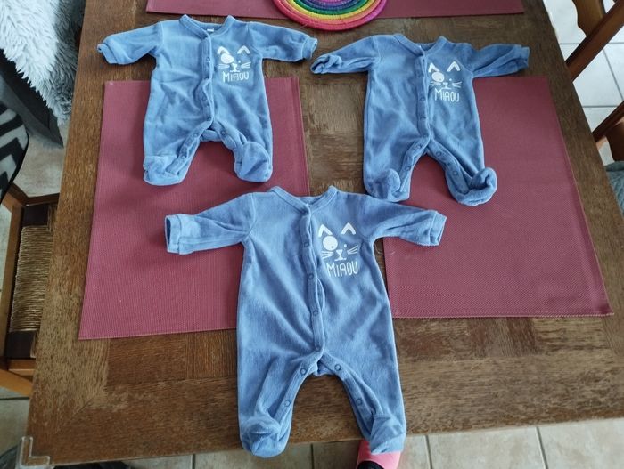 3 même pyjamas 1 pièce Prématuré en bon état et on été relaver.