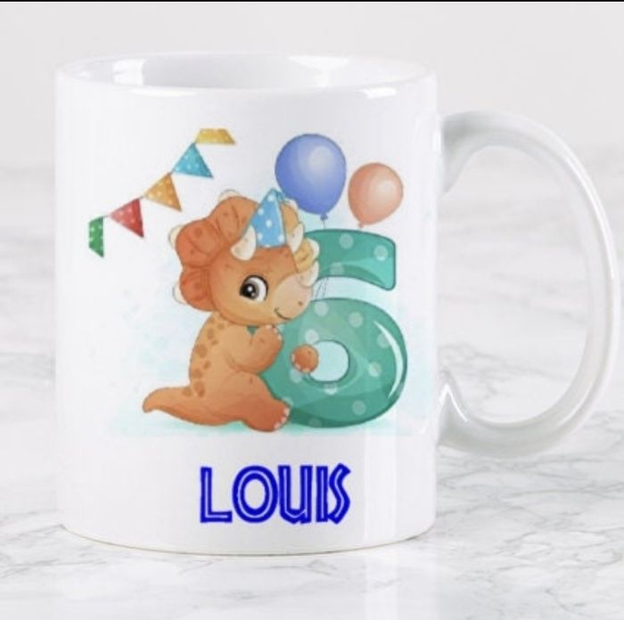 Mug dinosaure anniversaire avec l'âge de votre enfant et son prénom. Privilégier shop2shop