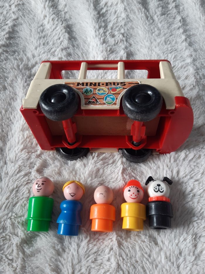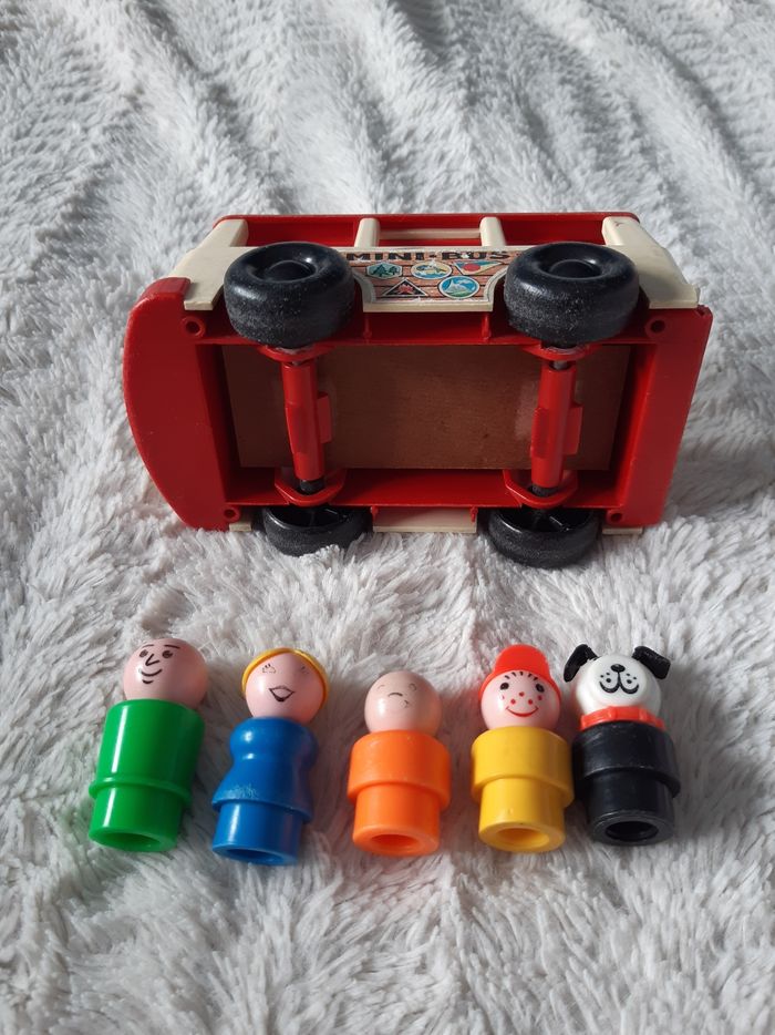 Jouet Fisher Price Vintage 1969 Mini Bus Famille avec un chien ⚠️ dessins effacés sur les visages ⚠️ D'autres photos possible sur demande Merci de privilégier les envois par Mondial Relay