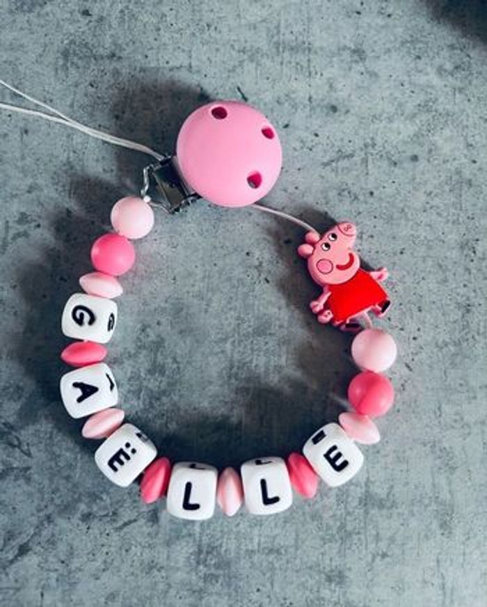 Attache tétine personnalisé en silicone ou en bois au souhait de l’acheteur . Personnalisable au choix de l’acheteur que ce soit la couleur comme le prénom ou le thème . Le fil est doublé pour plus de sécurité tout le long de l’attache tétine. N’hésitez pas à me demander et regarder mon dressing. Une photo vous sera envoyée avant l’expédition pour vous ayez un aperçu du rendu. Tous les produits sont réalisés avec du materiel spécial conçu aux bébés , enfants.