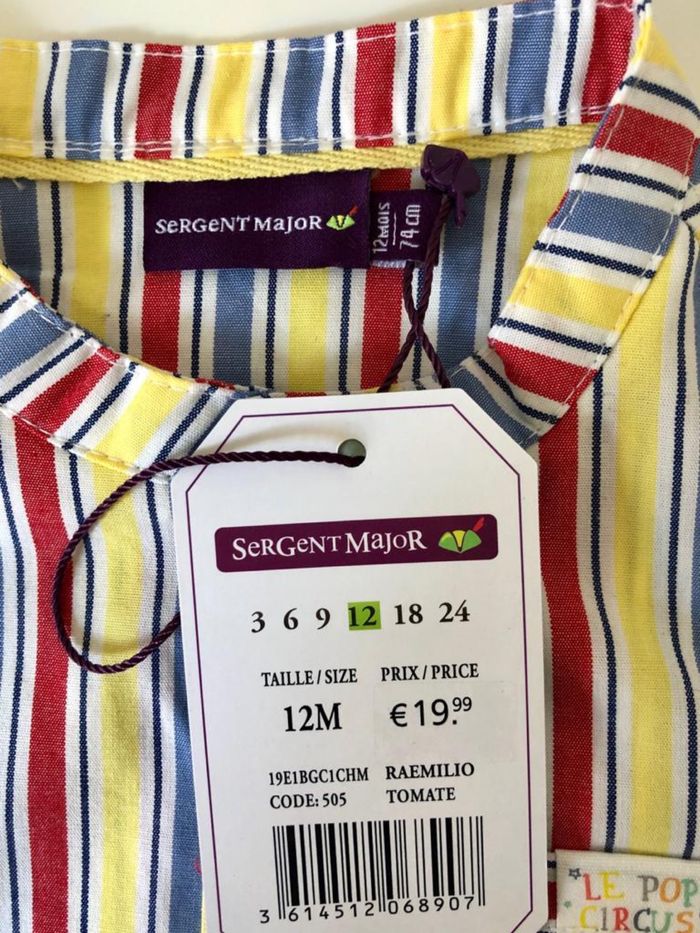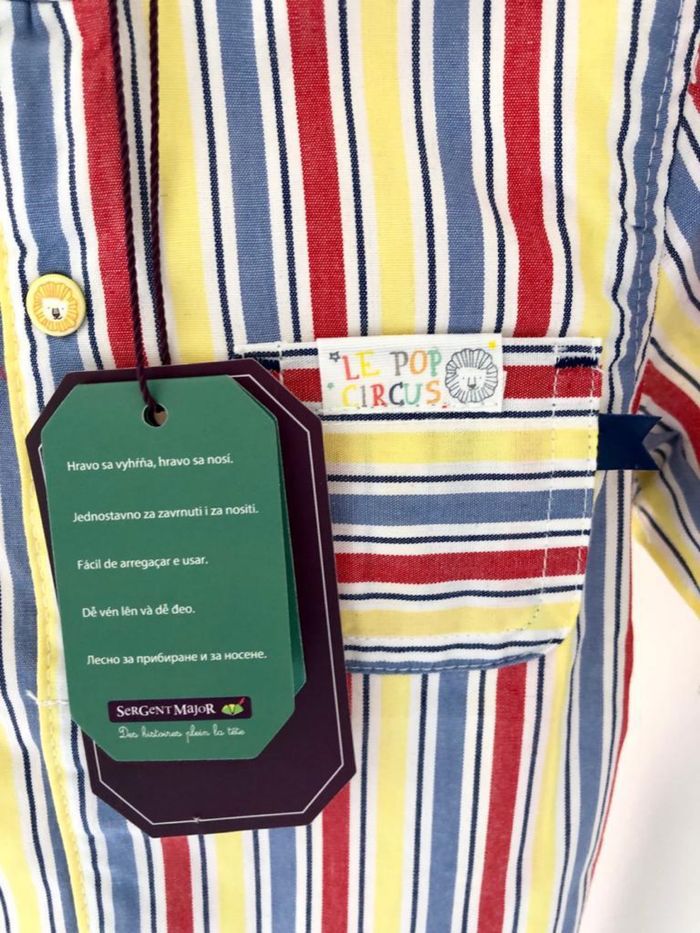 Magnifique chemise motif circus Sergent Major, taille 12 mois. Article neuf étiquette. Prix d’achat 20€.