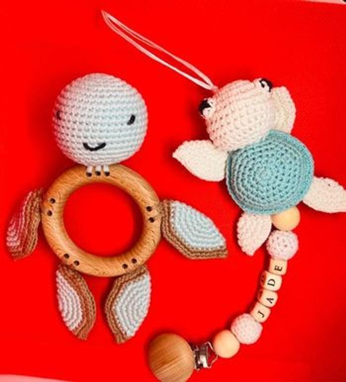 Attache tétine / hochet personnalisé en silicone ou en bois au souhait de l’acheteur . Personnalisable au choix de l’acheteur que ce soit la couleur comme le prénom ou le thème . Le fil est doublé pour plus de sécurité tout le long de l’attache tétine. N’hésitez pas à me demander et regarder mon dressing. Une photo vous sera envoyée avant l’expédition pour vous ayez un aperçu du rendu. Tous les produits sont réalisés avec du materiel spécial conçu aux bébés , enfants.