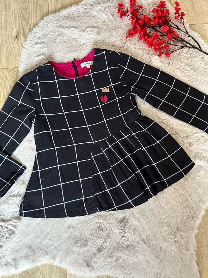 Superbe petite blouse , haut noir à carreaux blanc avec cœur et couronne. Achetée chez Catimini elle est en taille 4 ans Tre bon état