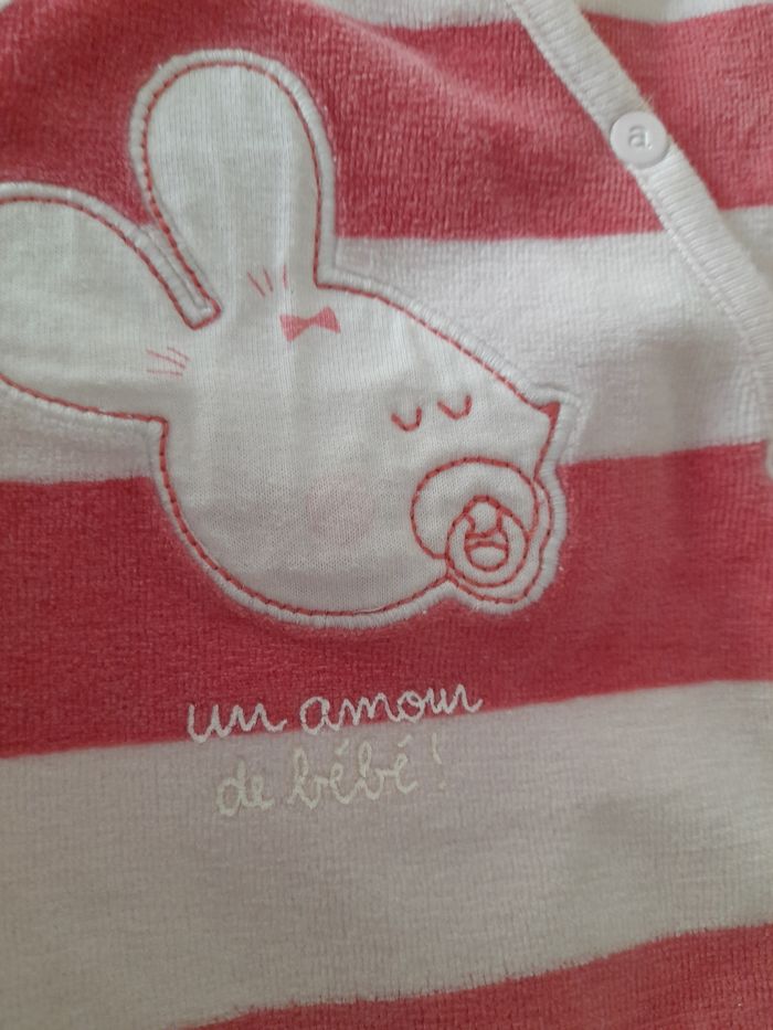 Je vends un pyjama bébé fille taille 0 mois il est en très beau état de la marque absorba