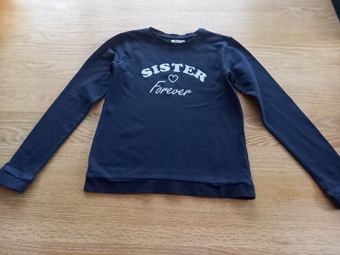 Sweat fille de marque Gémo en excellent état. Taille : 12 ans Couleur : bleu marine et argent #fille12anssigtmoi