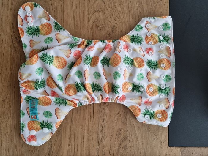 Vends un lot de 5 couches de marque Alvababy. Ce sont des couches TE1 a poche en bon état. Entretenue en 2 cycles en machines comme préconisé sur les differents blog. Taille unique se règle grâce aux boutons pressions. Je vends avec 5 inserts. Je donne 1 couche (motif ananas) car j'ai systématiquement des problèmes de fuites avec sans savoir pourquoi. Je donne également 2 inserts supplémentaires car décousu sur le côté mais cela ne change en rien leur absorption.
