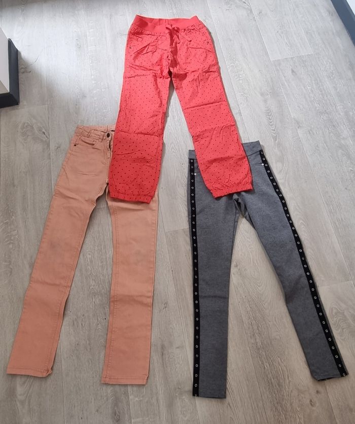 Vend 3 pantalon le saumon à des traces d'usure au genoux voir photo et le rouge à petit pois est neuf jamais porté.