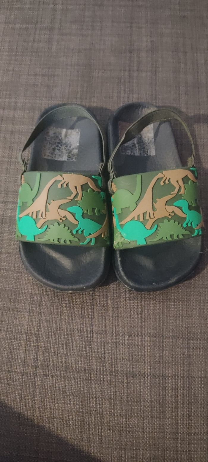 Vends claquettes dinosaure pour garçon (ou pas ) bon état, rarement portées. Taille 24