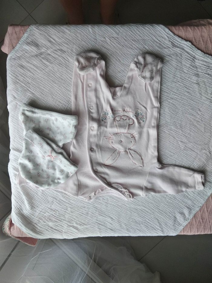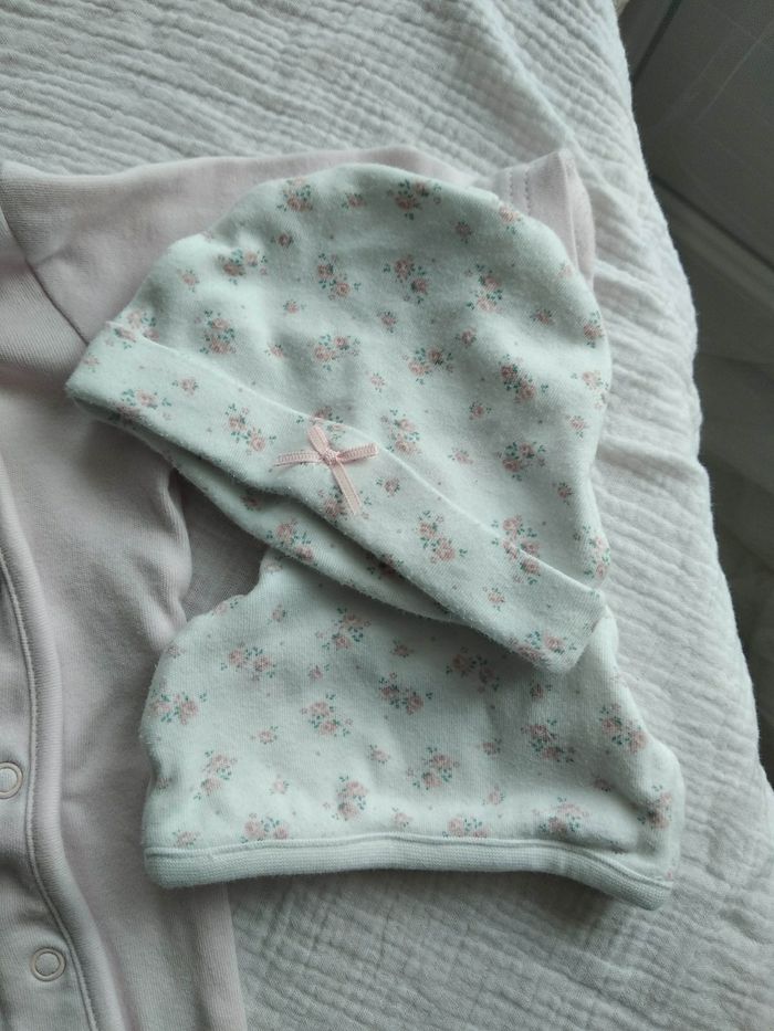 Pyjama  1 mois et 2 bonnet assortis - fille - photo numéro 1