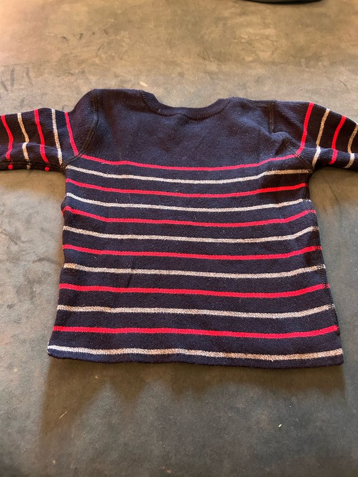 Pull rayé, à manches longues. Taille : 6 mois.