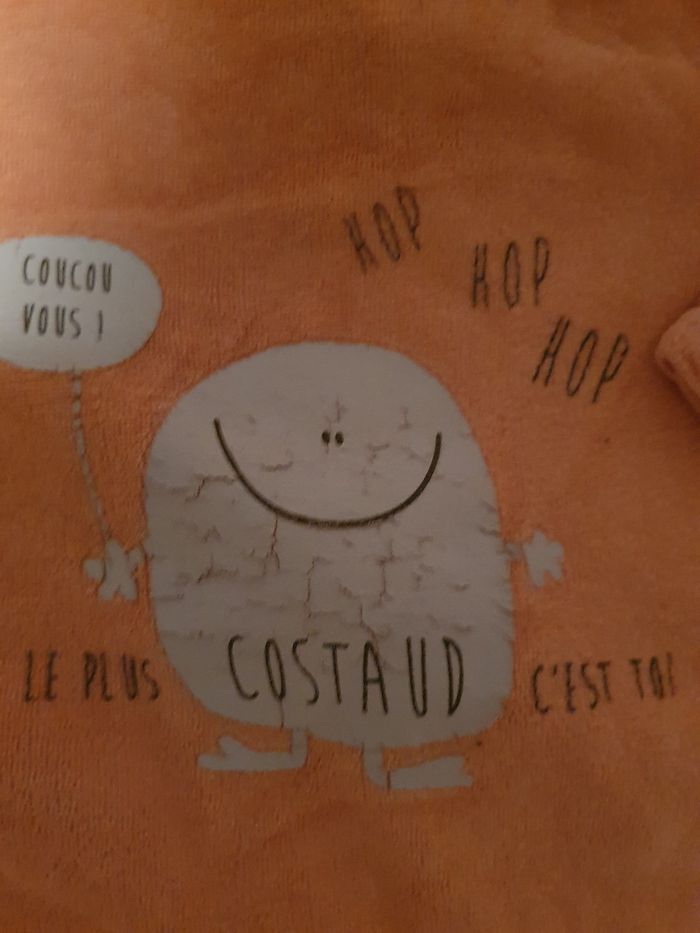 Pyjama souvent porté pas de trou ni de taches usure de la machine et le dessin est craquer.