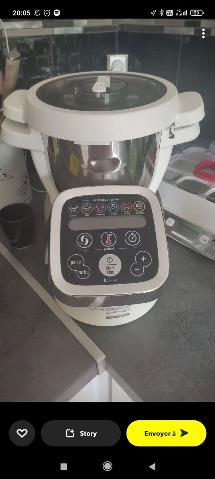 Companion moulinex en bon état Avec un 2 ème plastique couvercle, le panier vapeur et des livres companions de cuisine, les pales.
