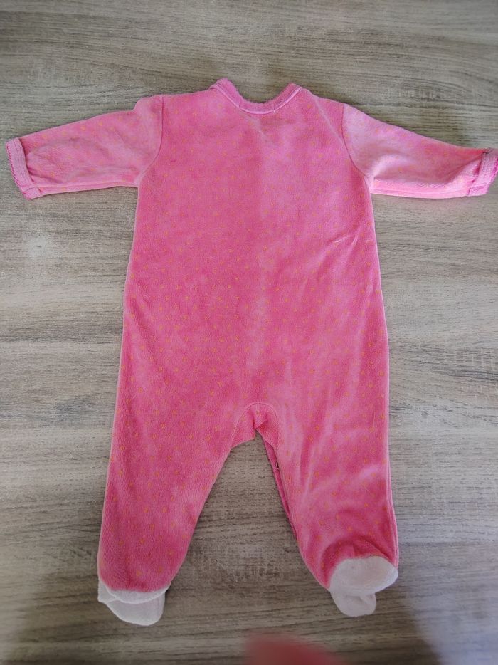 Pyjama 3 mois marque kitchoun. Rose avec points orange. Bon état. Trace d'usure suite aux divers lavage: cCf photo