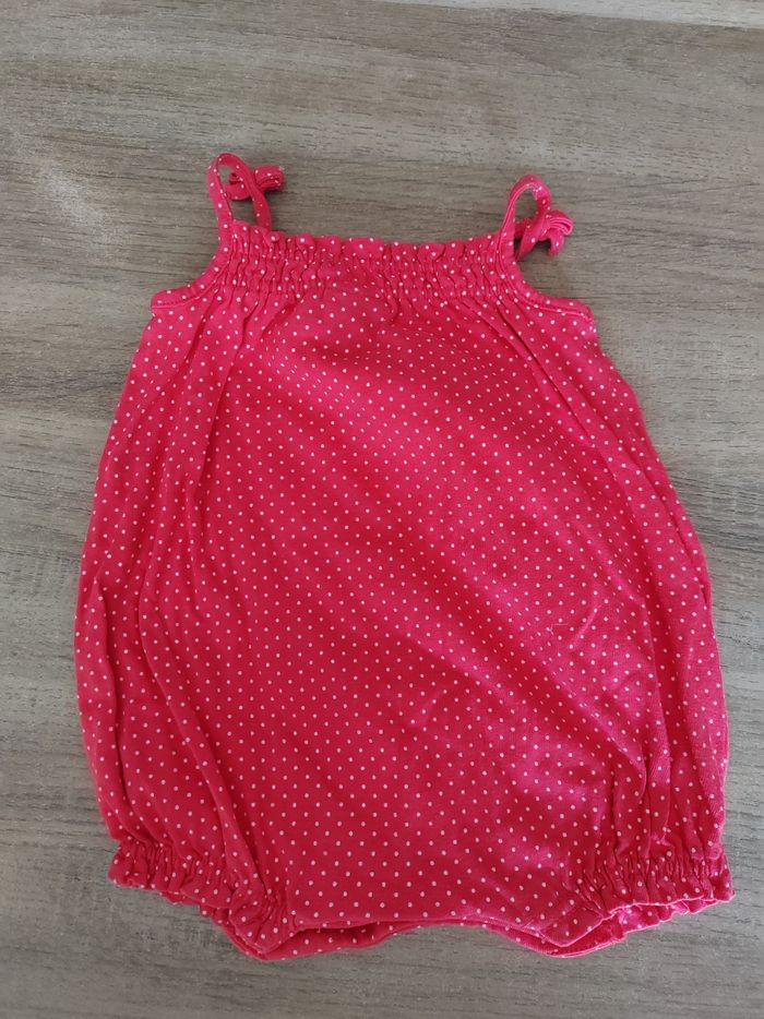 Combinaison 3 mois de marque sergent major. Couleur rouge à pois blanc. Très bon état.