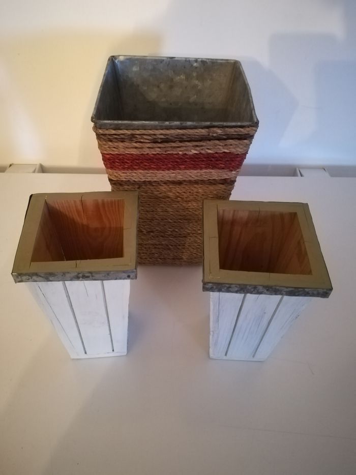 Lot de 3 pots 1 en métal 2 en bois 3euros le lot