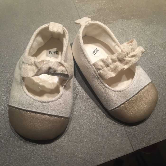 Chaussures en tissu écru à paillettes doré 3/6 mois Neuve, jamais portées marque inconnue
