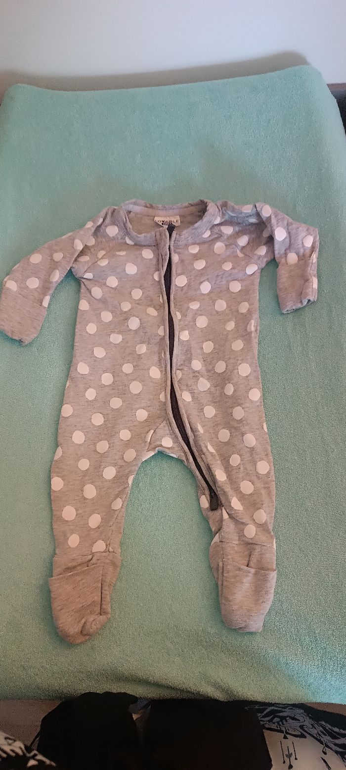 Pyjamas naissance allant jusqu'a un petit 1 mois ,super pratique avec le zip ,et les moufles intégrés qu'on peut enlever si on veut