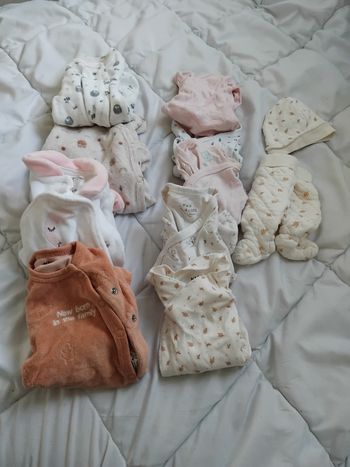 Je vends 4 pyjama taille 1 mois en très bon état 3 pyjamas velours et un pyjama plus fin pour lété