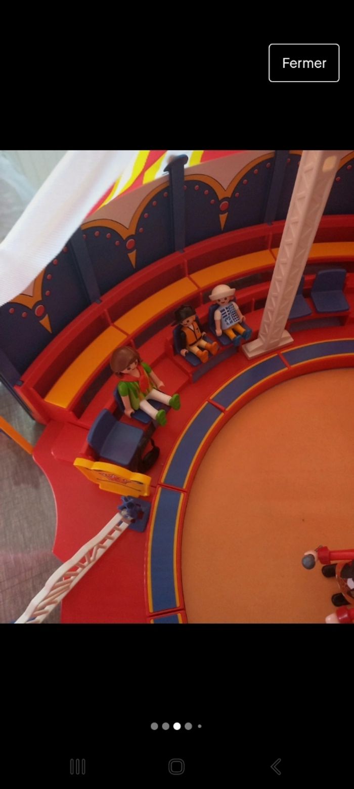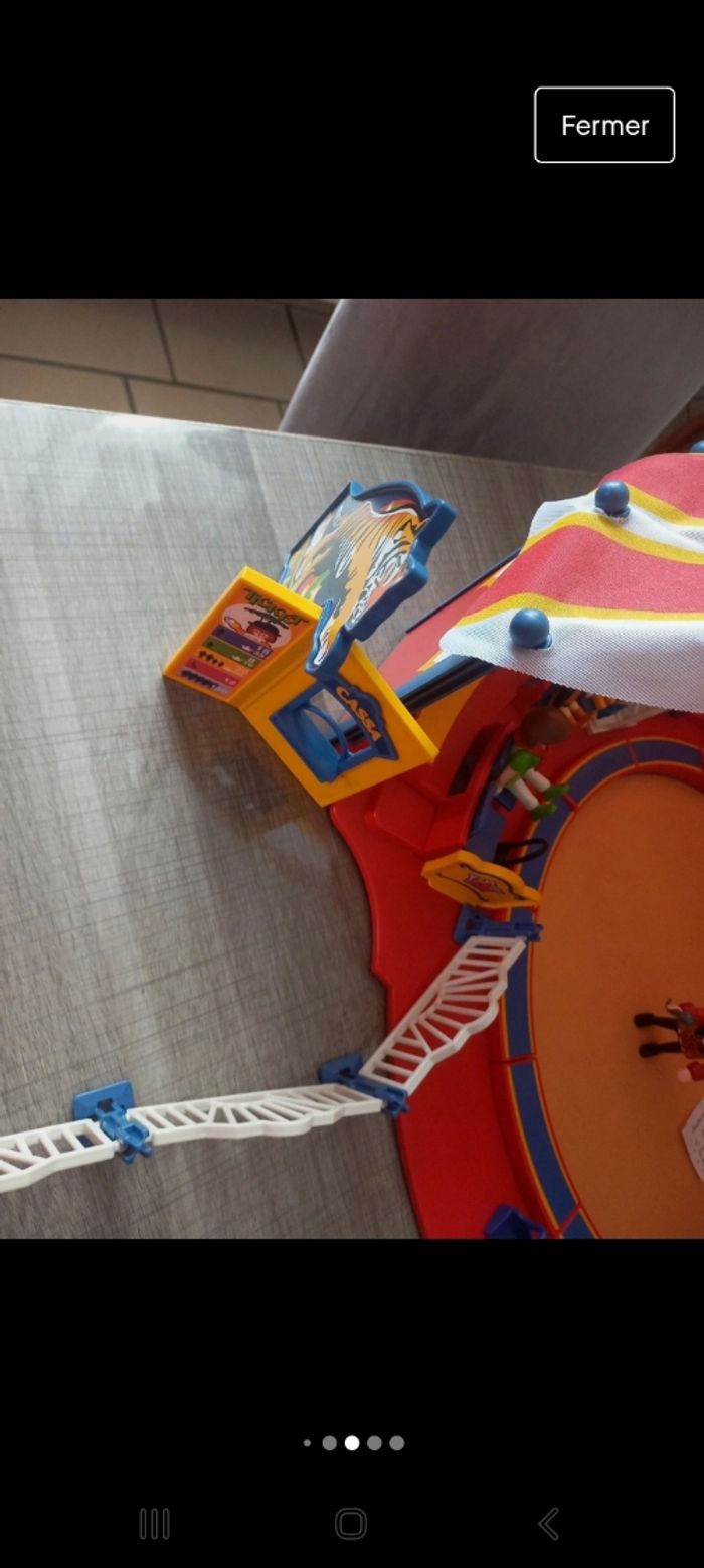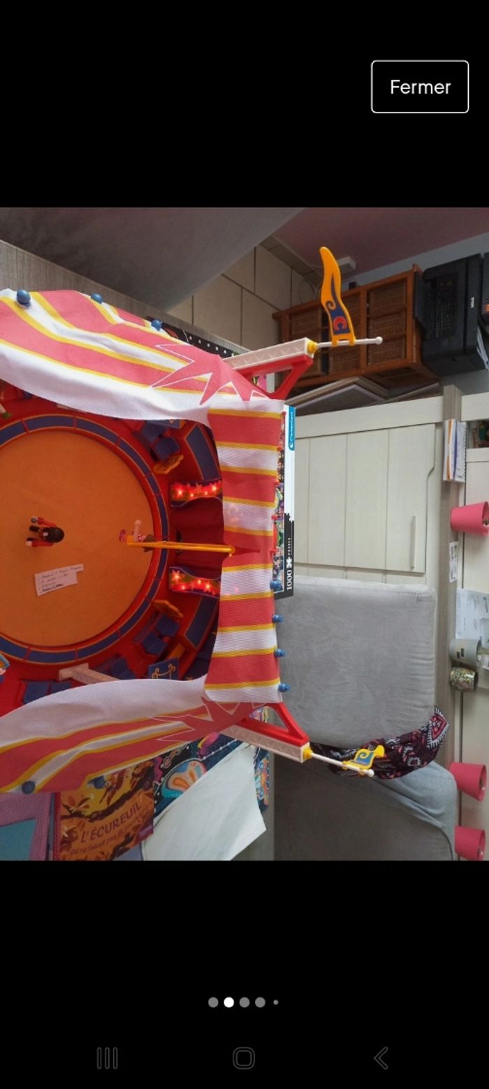 Chapiteau en très bon état presque complet manque 1 trapéziste, le chapeau et les chaussures de m loyal et quelques projecteurs le reste est complet. Avec notice