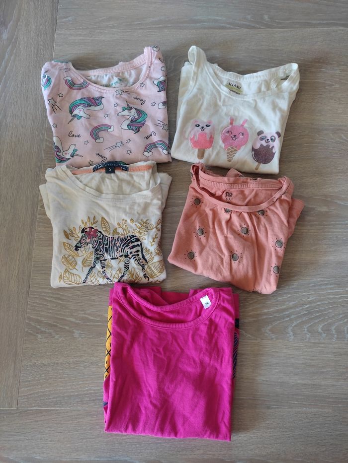 Lot de 5 tee-shirts en bon état 2 ème photo : marque Kiabi 4 ans 3 ème photo : marque Primark 4-5 ans 4 ème photo : sans marque taille 104 cm 5 ème photo : marque TQF COLLECTION 5 ans taille petit 6 ème photo : sans marque 5 ans taille petit