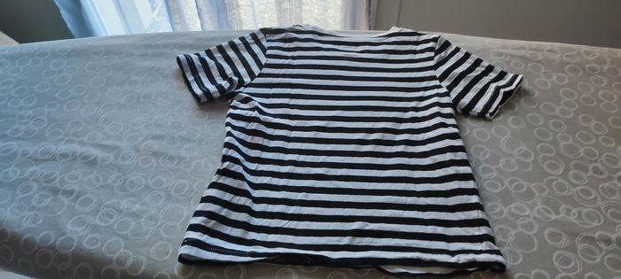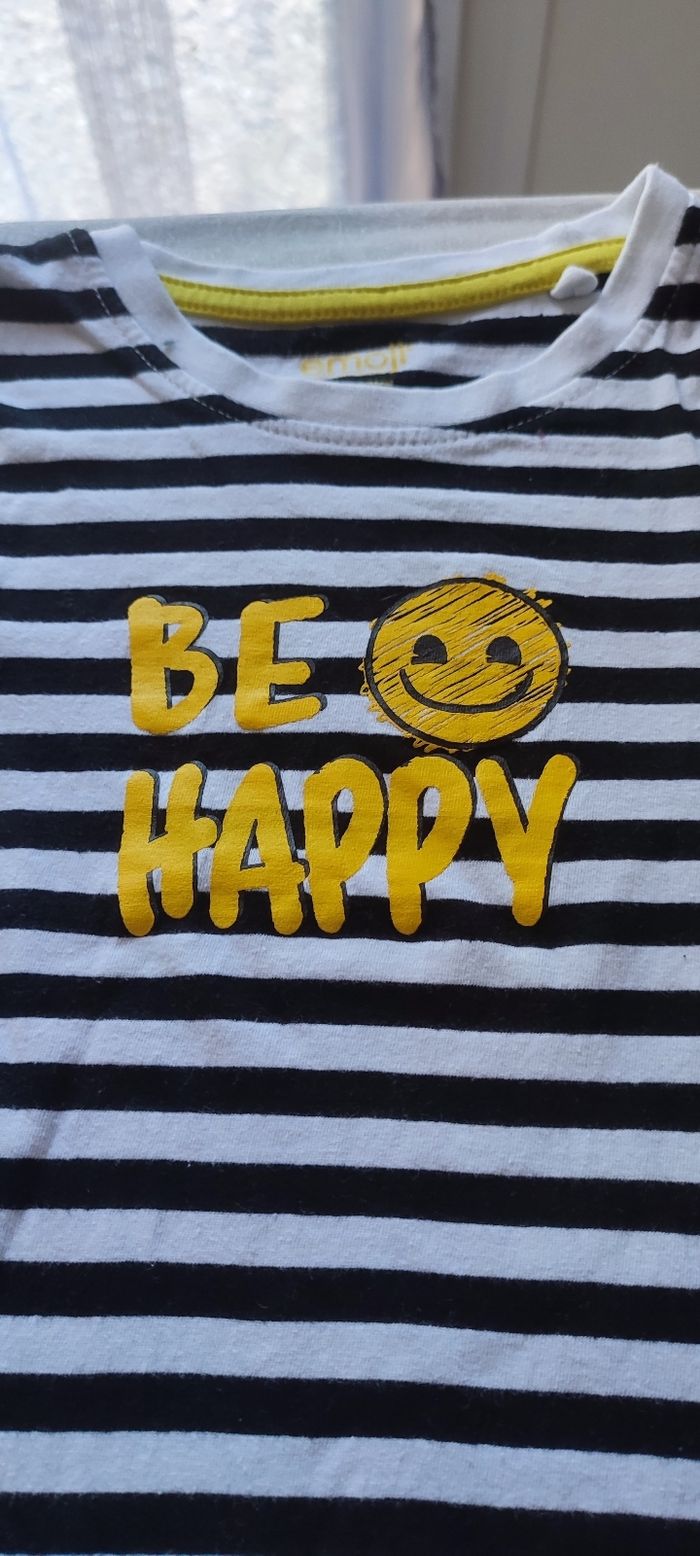 T-shirt rayé noir et blanc smiley 🙂, neuf, très bon état, taille 2-4 ans, marque Emoji