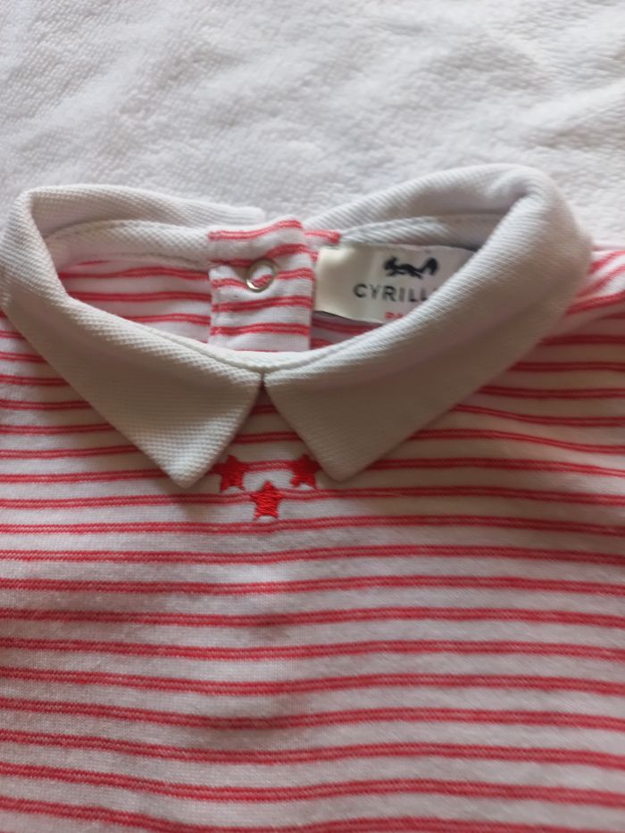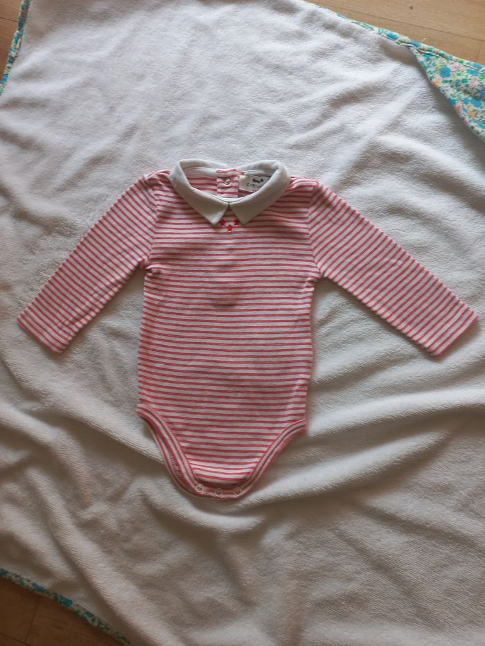 Body col et manches longue. 3 mois. Rouge et blanc. Très peu porté. Excellent état