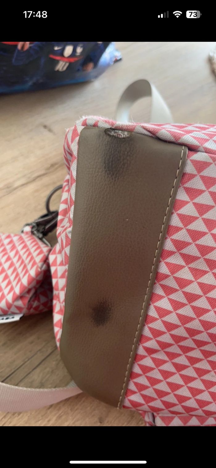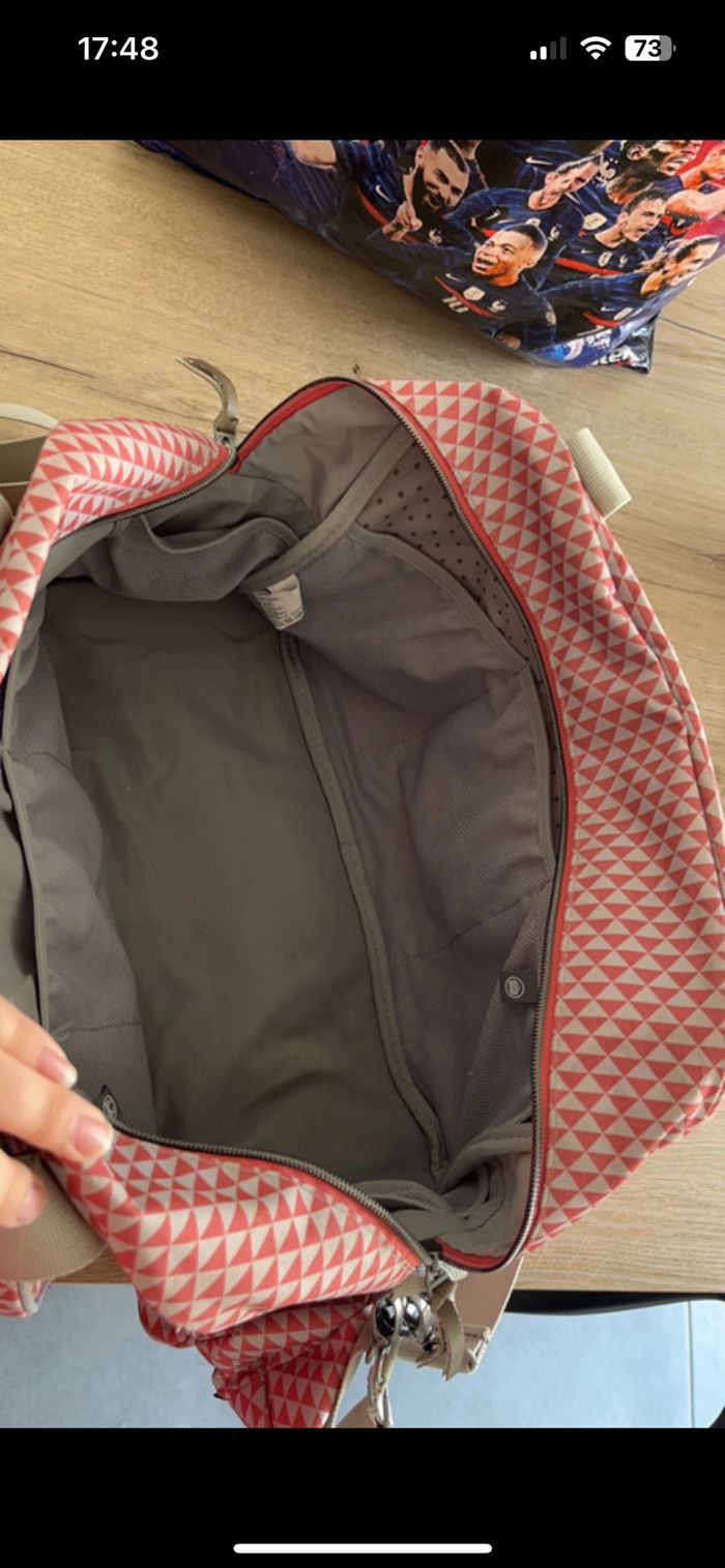 Sac à langer de la marque beaba En bon état (quelques traces d'usures en dessous, et quelques petites taches) Accroches poussette et pochette à tétines fournis avec Je l'ai acheté d'occasion il y a peu, mais je ne m'en suis jamais servie (au final le modèle ne me plaît pas)