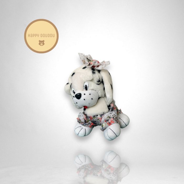 Peluche doudou dalmatien noir blanc tenue fleurs A462 - photo numéro 1