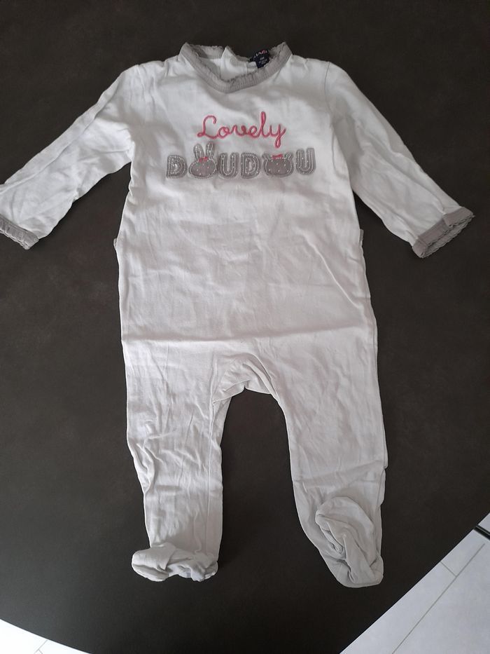 Pyjama fin blanc "Lovely doudou" Taille 6 mois (63-69cm/ 8 kg)