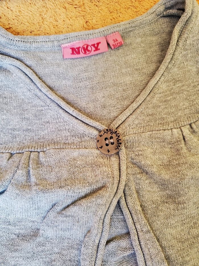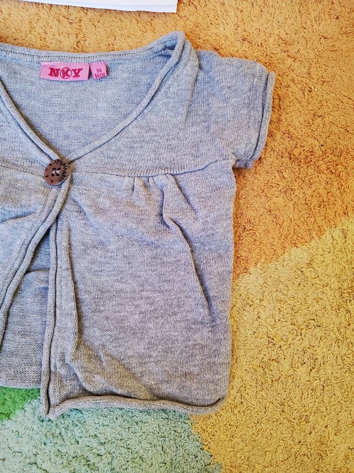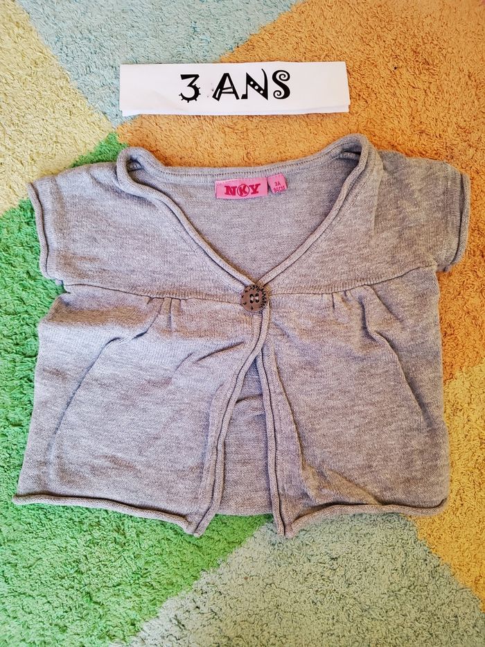 Vends en lot les vêtements de mes enfants, du bébé à l'enfant (vide dressing). Ici, une veste caraco à manches courtes. En coton. Taille : 36 mois - 3 ans Saison : printemps / été Etat : très bon état Marque : NKY Pour, fille Plusieurs tailles disponibles, vêtements pour garçon ou fille.