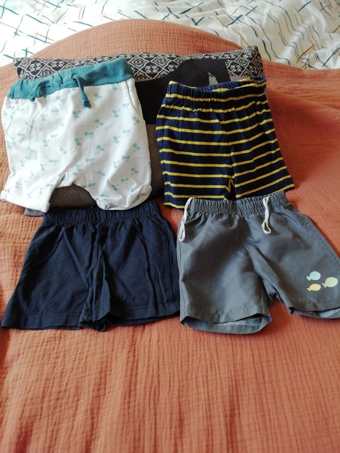 Il fait chaud 🥵 la saison des shorts est arrivé 4 shorts Taille 6 mois Taille élastique Un blanc vert Motif palmier Un noir et jaune Un noir Un gris Motif petits poissons