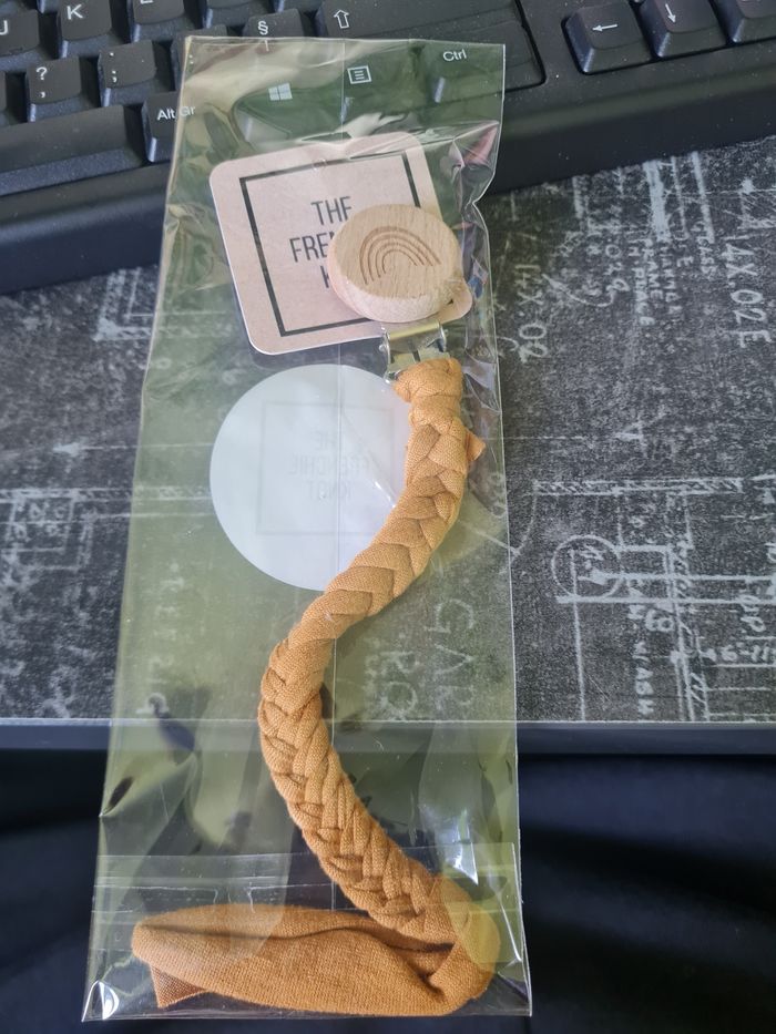 Attache tétine en macramé coloris curcuma réf c15