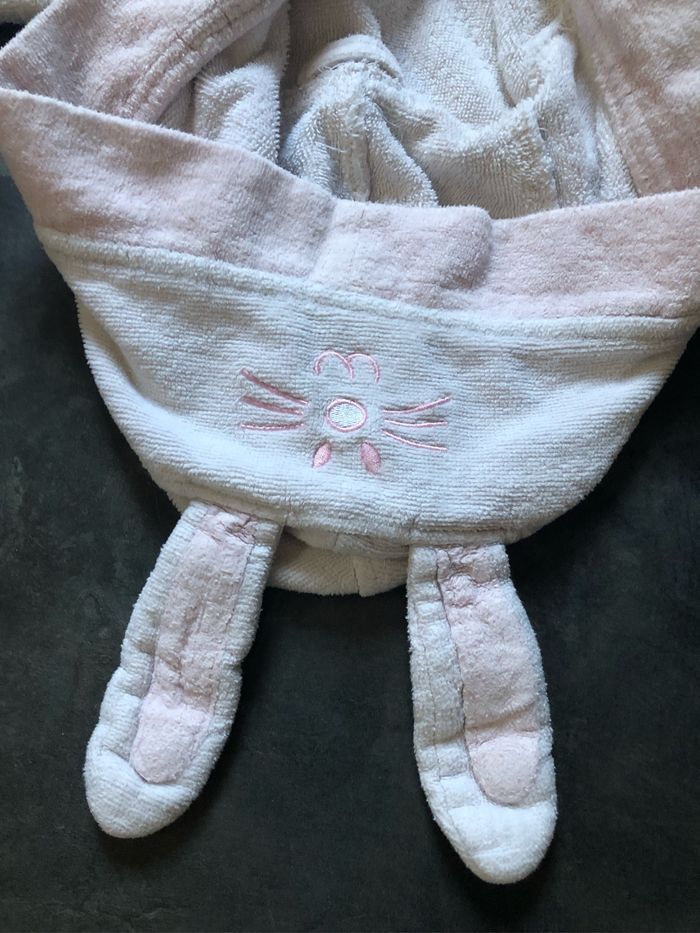 Peignoir sortie de bain en éponge 100% coton blanc et rose Capuche brodée avec oreilles de lapin Taille 2/3 ans la halle